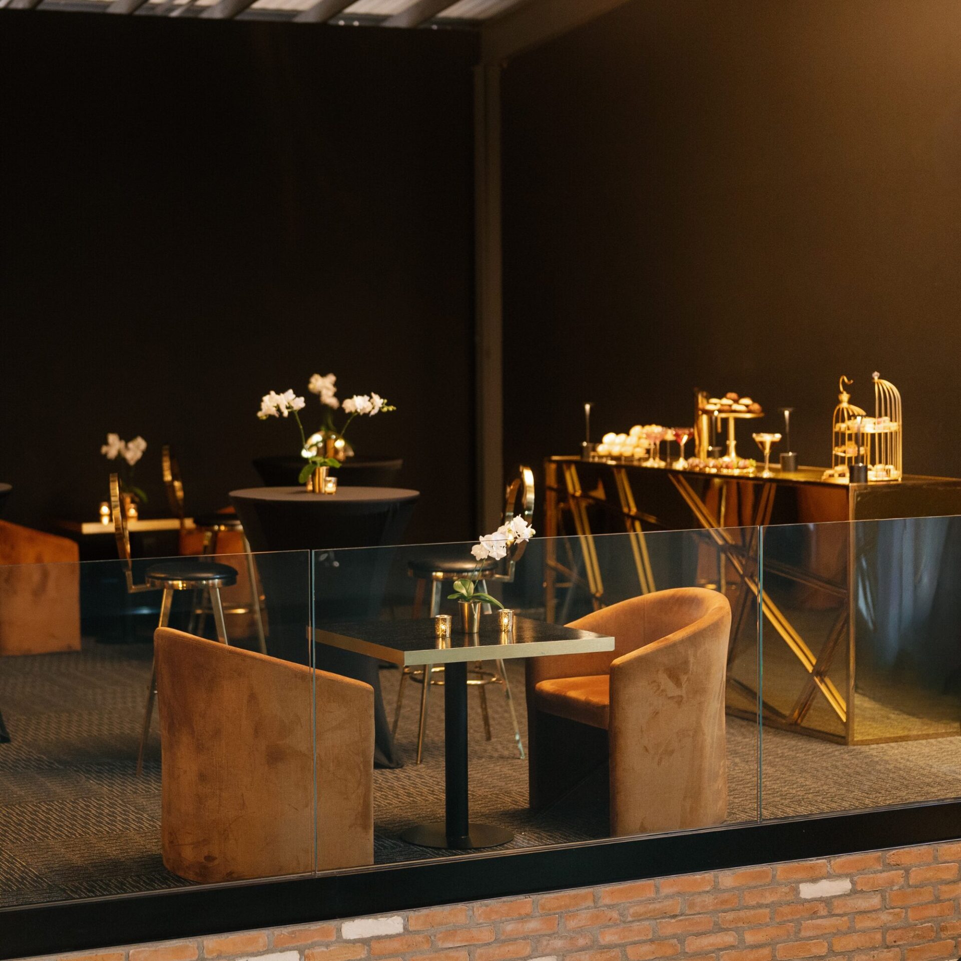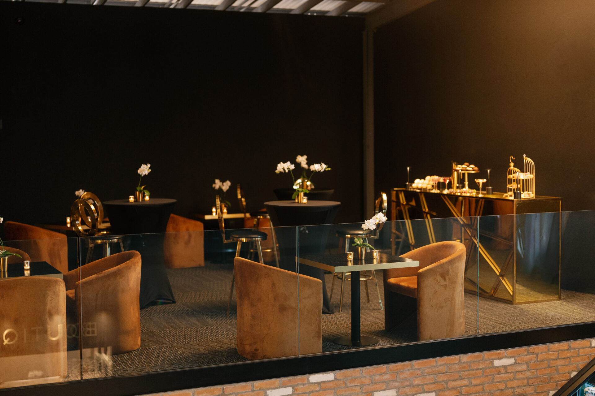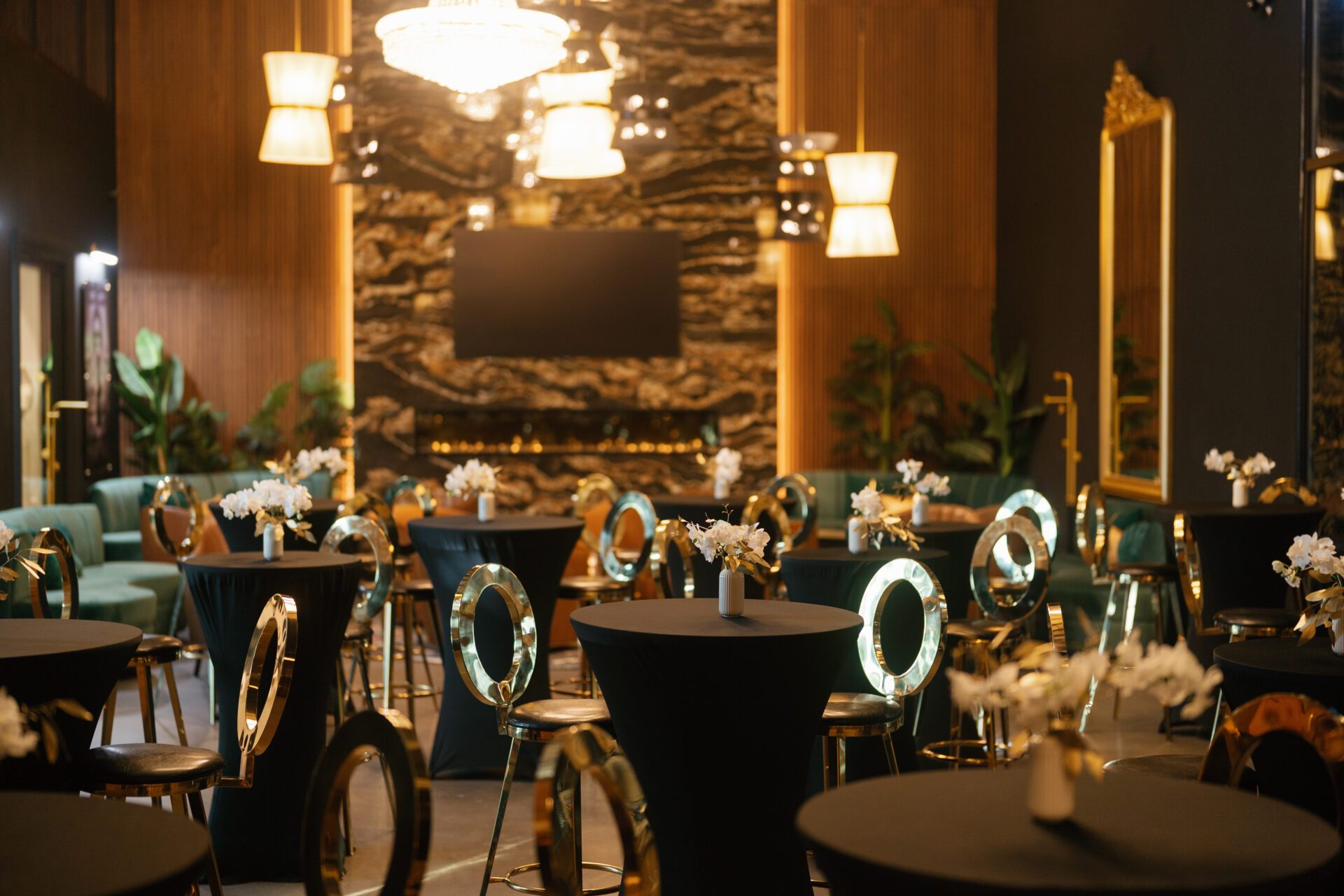 Located upstairs, the Luxe Lounge offers an intimate and refined setting that can be tailored to your wedding vision. This flexible space is ideal for a martini bar, dessert lounge, or a more private gathering within your celebration. With its elevated perspective and elegant atmosphere, the Luxe Lounge adds a layered, thoughtfully designed element to your wedding day.